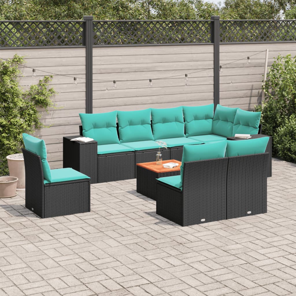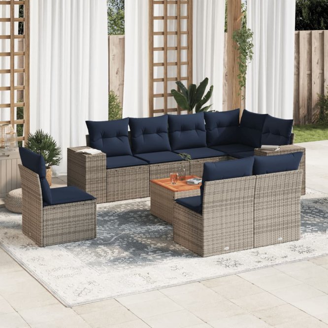 vidaXL 9-delige Loungeset met kussens poly rattan grijs