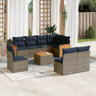 vidaXL 9-delige Loungeset met kussens poly rattan grijs
