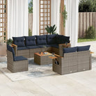 vidaXL 9-delige Loungeset met kussens poly rattan grijs