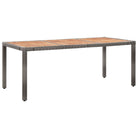 • Materiaal: PE rattan, acaciahouten tafelblad en armsteunen, en gepoedercoat stalen frame