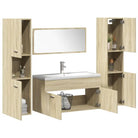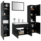 De meubelset bestaat uit een wastafelkast met een wasbak, 2 hoge kasten en een spiegel. De chique wastafelkast heeft 1 vak en past perfect onder je wastafel, waardoor hij heel handig is. De wastafel is gemaakt van keramiek en dient niet alleen als product voor dagelijks gebruik, maar ook als versiering in je leefruimte. Dankzij zijn trendy en eigentijdse ontwerp past deze wastafel beslist in elk interieur. De overloop zorgt ervoor dat de bak nooit kan overlopen. Elke hoge kast heeft in totaal 5 vakken en 2 deuren, waardoor er voldoende ruimte is om spullen in je badkamer op te bergen. De spiegel geeft je interieur een prachtige uitstraling. Deze badkamerset is gemakkelijk schoon te maken met een vochtige doek.