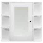 De wandspiegelkast is gemaakt van glas en MDF met melamine-oppervlak, waardoor hij duurzaam en stabiel is. De kast heeft 1 deur en in totaal 8 vakken, waarvan 6 aan de buitenkant en 2 aan de binnenkant. Ze zijn ideaal voor het opbergen van je toiletartikelen en badspullen, zoals zeep, shampoo en tandpasta.