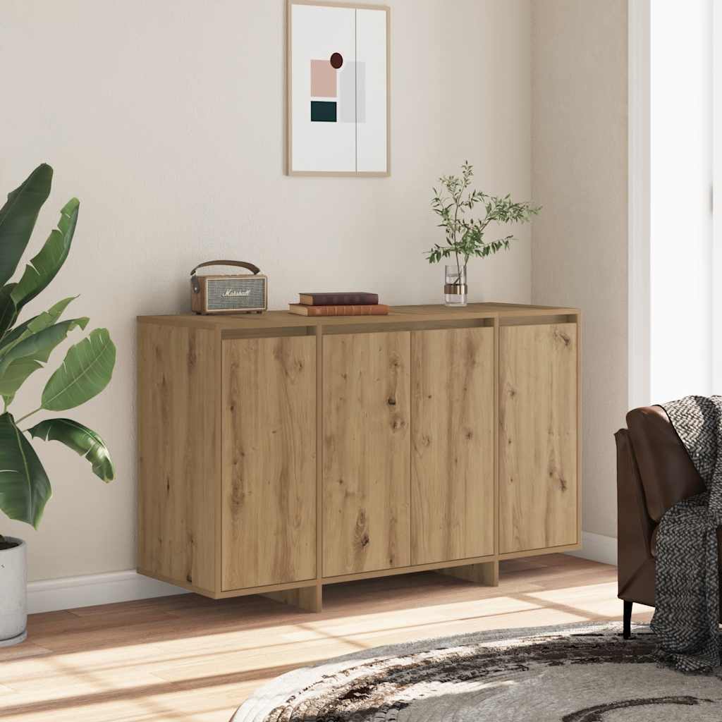 Deze bijzetkast heeft 4 deuren, waardoor hij voldoende opbergruimte biedt om verschillende spullen goed georganiseerd en binnen handbereik te houden. Het stevige blad is perfect voor het plaatsen van decoraties zoals fotolijstjes en potplanten. De kast is daarnaast eenvoudig schoon te maken met een vochtige doek.