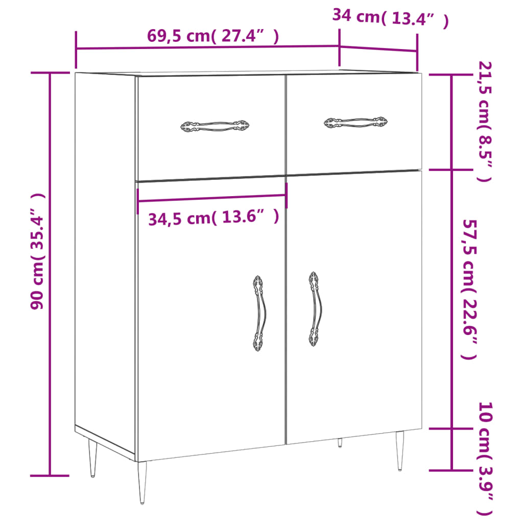 vidaXL Dressoir 69,5x34x90 cm bewerkt hout wit