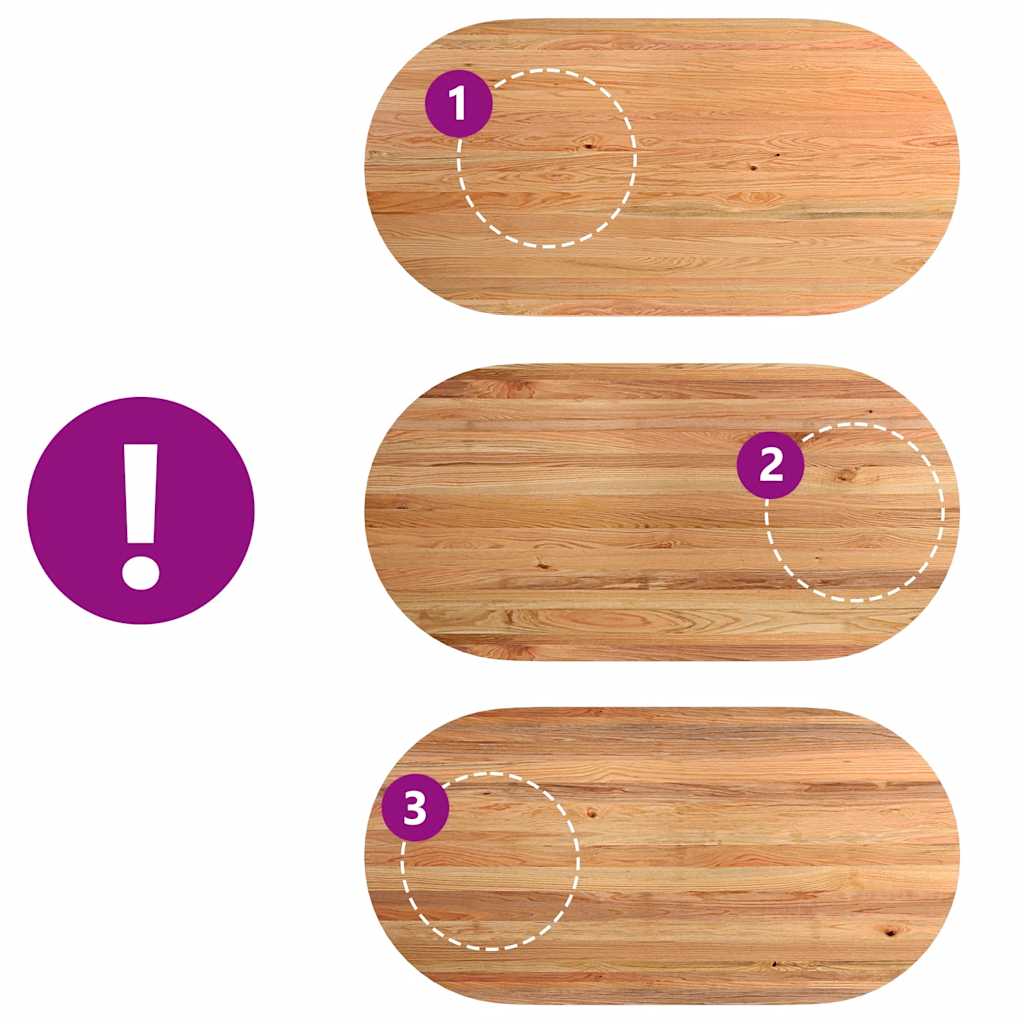 • Noesten en kleine gebreken zijn opgevuld met zwart vulmateriaal om een mooi en glad tafeloppervlak te geven. Raadpleeg de afbeeldingen voor voorbeelden.