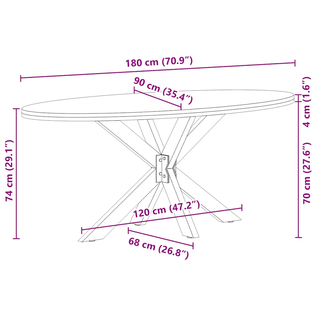 vidaXL Eettafel 180x90x74 cm ovaal massief eikenhout lichtbruin
