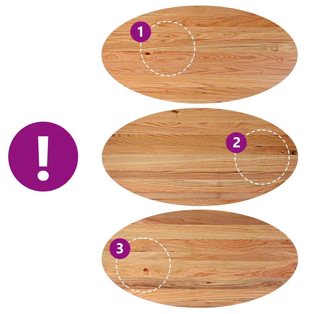 - Noesten en kleine gebreken zijn opgevuld met zwart vulmateriaal om een mooi en glad tafeloppervlak te geven. Raadpleeg de afbeeldingen voor voorbeelden.