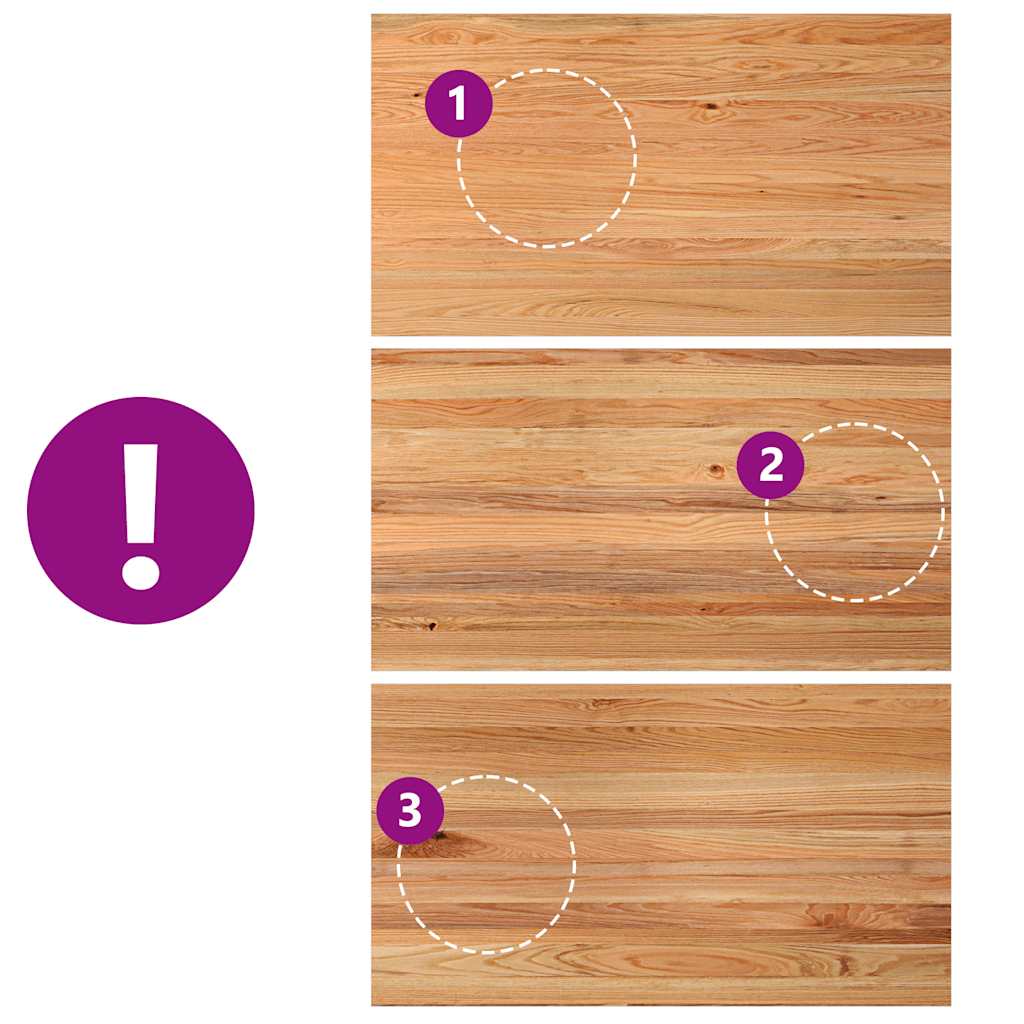 - Noesten en kleine gebreken zijn opgevuld met zwart vulmateriaal om een mooi en glad tafeloppervlak te geven. Raadpleeg de afbeeldingen voor voorbeelden.