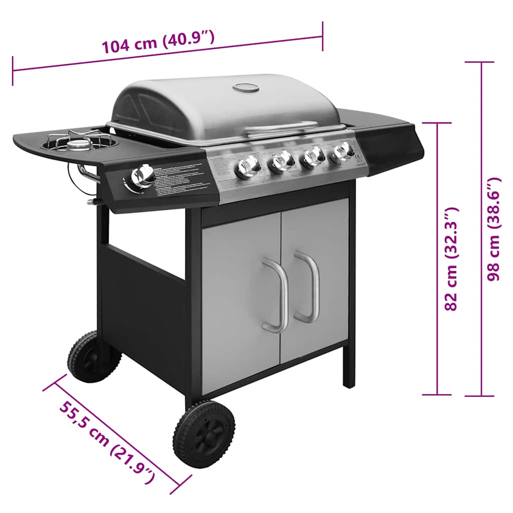 vidaXL Gasbarbecue 4+1 kookzone zwart