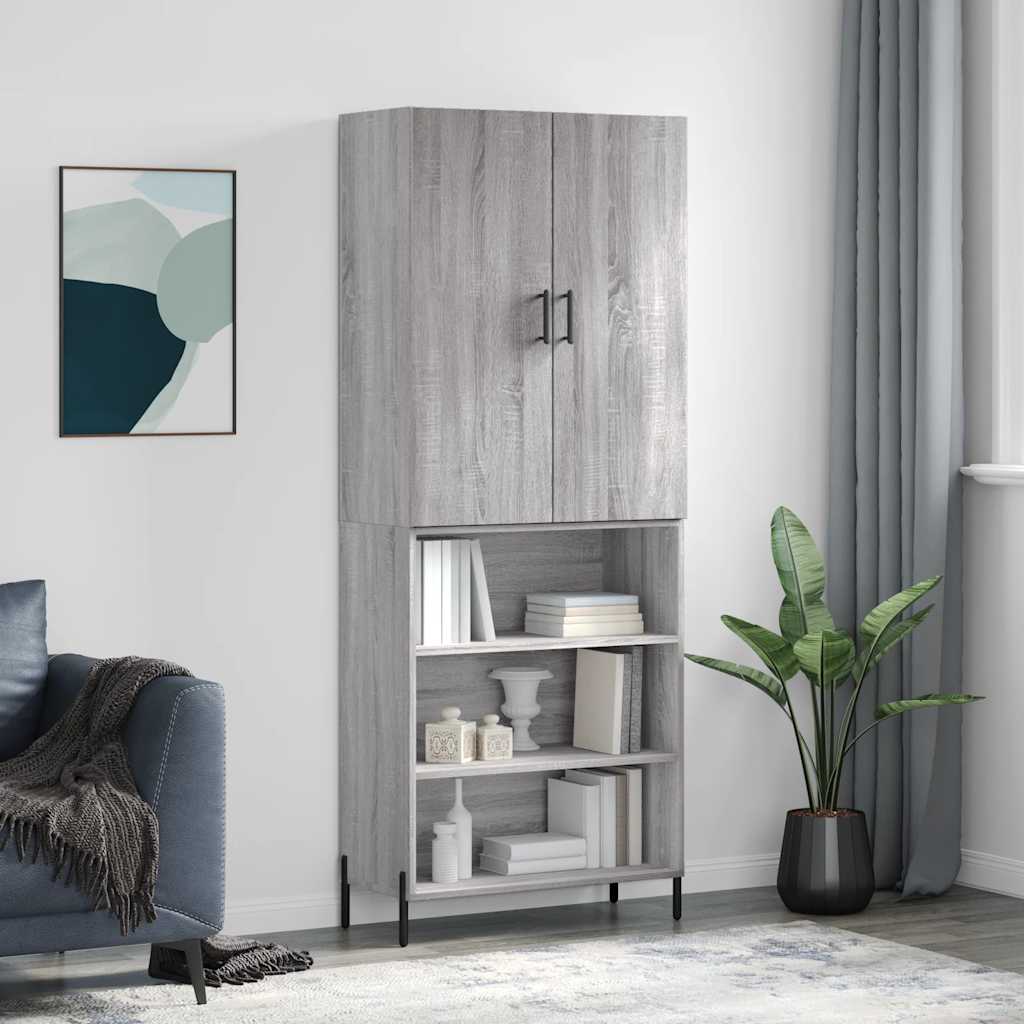 vidaXL Hoge kast 69,5x34x180 cm bewerkt hout grijs sonoma eikenkleurig