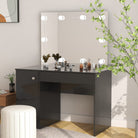 Deze kaptafel, gemaakt van MDF, heeft een strak en beknopt silhouet met een moderne stijl. Hij biedt voldoende ruimte voor make-upartikelen en houdt alles op zijn plaats. Kaptafelspiegel: de prachtige spiegel biedt duidelijk zicht om je make-up aan te brengen en voegt een vleugje elegantie toe aan de kaptafel. De afgebeelde elegante LED-lampen verlichten ook je schoonheid.