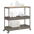 vidaXL Keukentrolley 3-laags poly rattan en massief acaciahout grijs