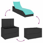 vidaXL Ligstoel inklapbaar met kussen opbergruimte poly rattan zwart