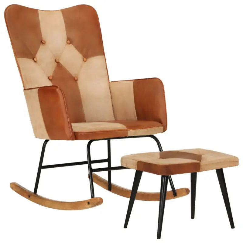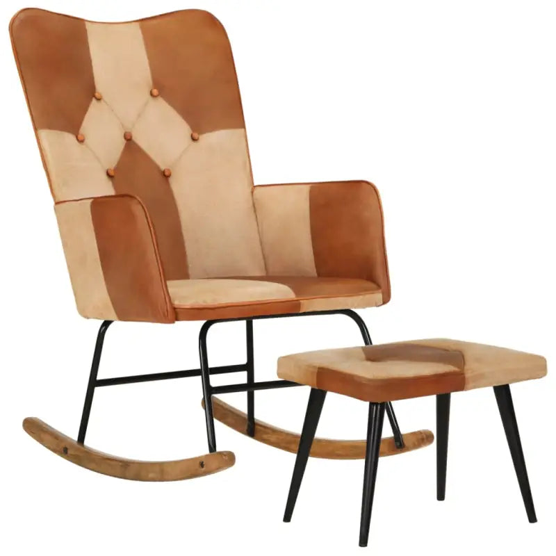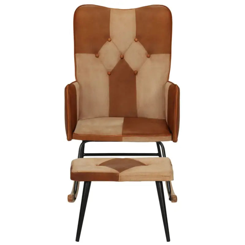 Echt leren schommelstoel met voetenbank voor ontspanning in huis