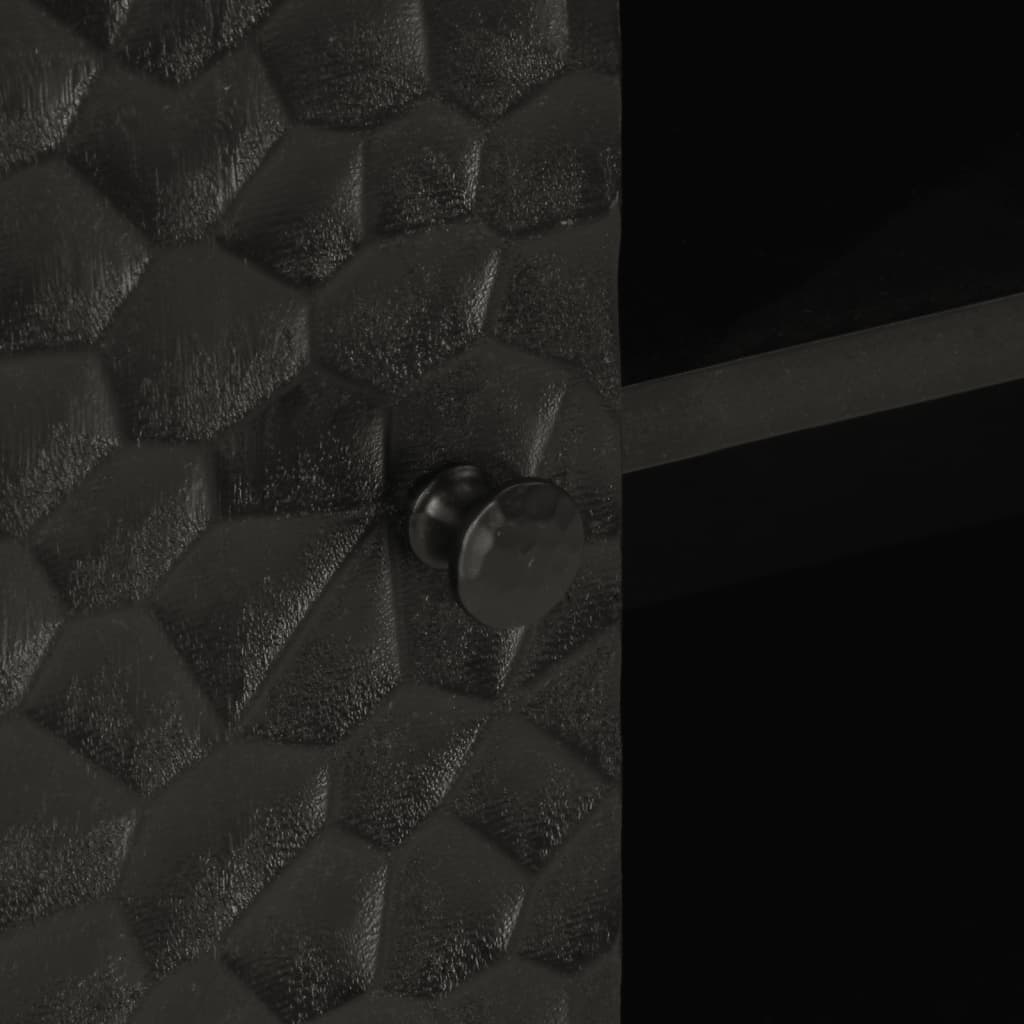 - Materiaal: massief mangohout met zwarte beits, ijzer en bewerkt hout